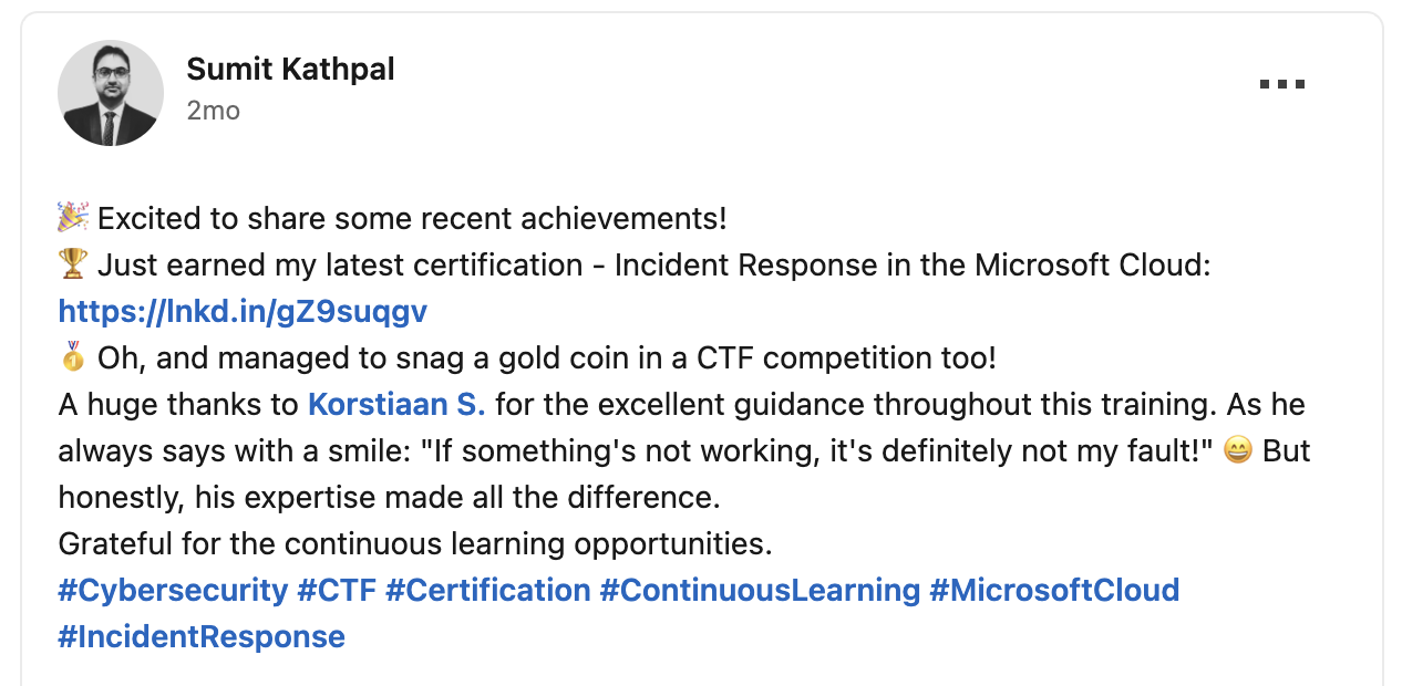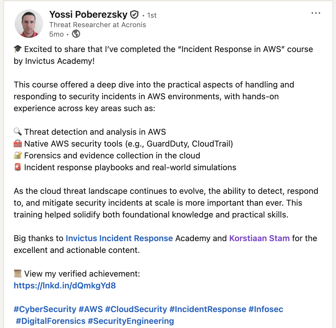 Hi there, my name is Korstiaan Stam I'm your trainer for the course. I am a passionate incident responder and teacher. I've been lucky enough to combine two of my passions for the past years. Currently I teach Cloud Forensics at the well known SANS Institute. I also founded Invictus Incident Response a company specialized in cloud incident response. I hope you will enjoy my courses.
